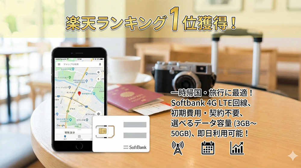 【楽天ランキング1位獲得!】一時帰国や国内旅行に大活躍!当店大人気の「Softbank回線 プリペイドSIM」をご紹介します