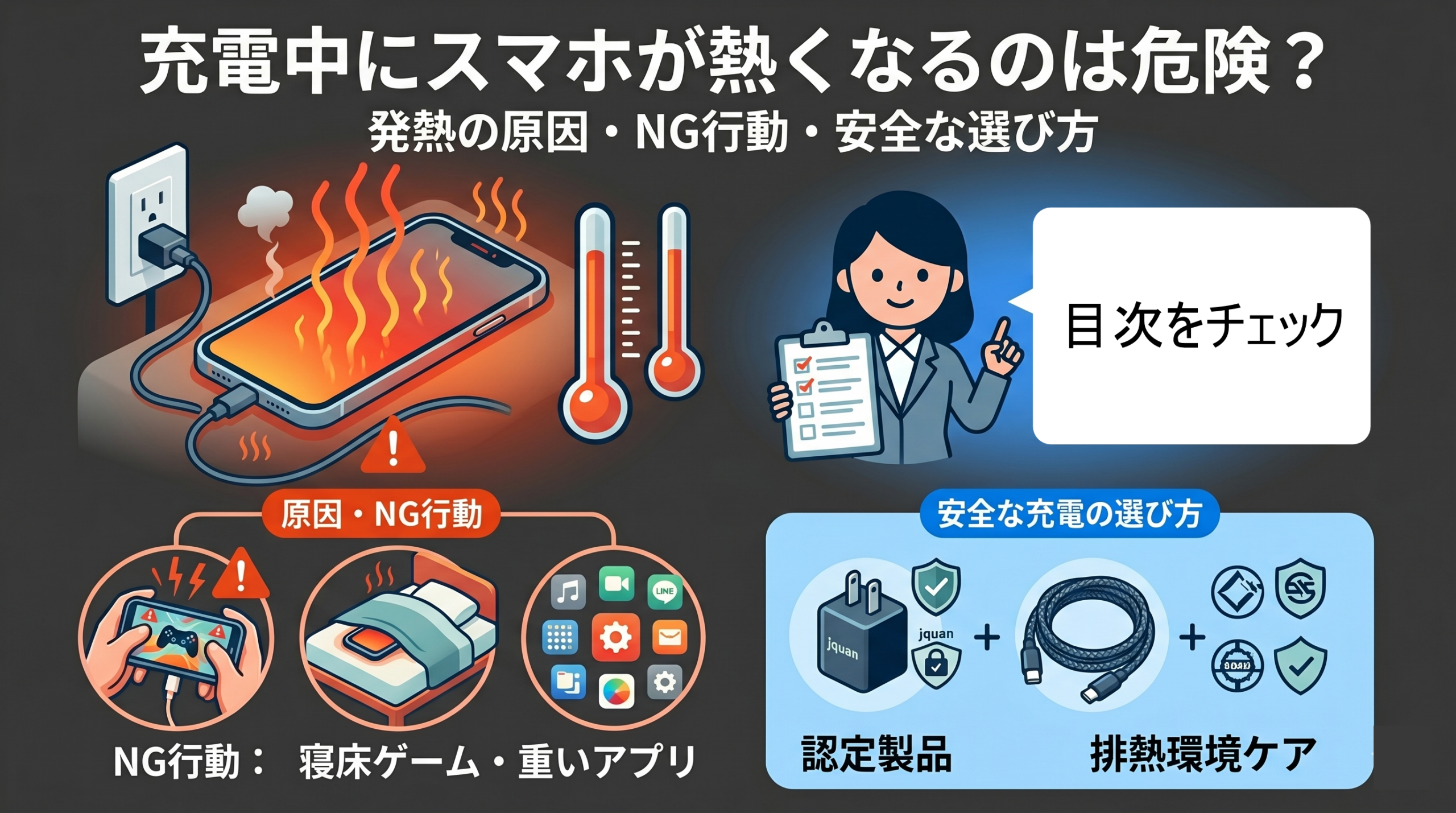 充電中にスマホが熱くなるのは危険?発熱の原因・NG行動・安全な充電アクセサリーの選び方