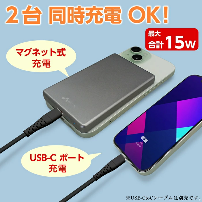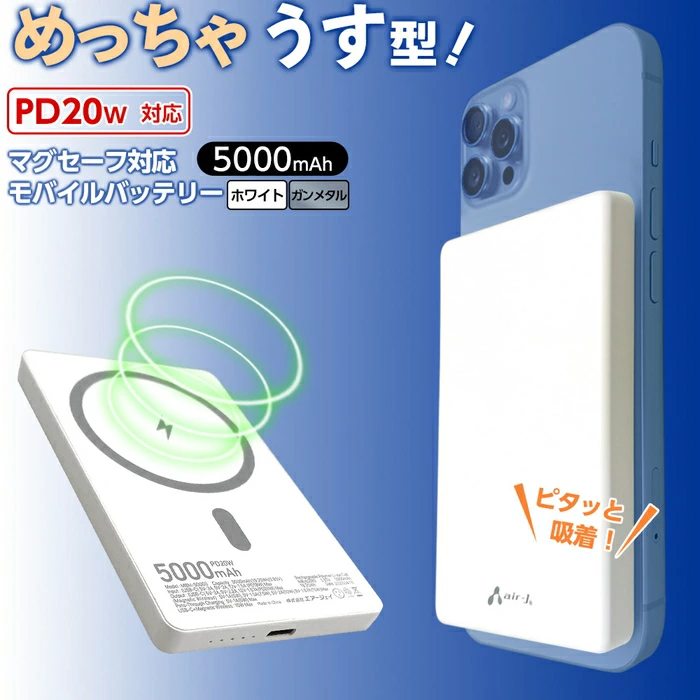 🔗MagSafe対応 薄型モバイルバッテリー 5000mAh