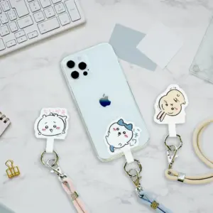 ちいかわデザインの「フォンタブ(ケースの中に挟むシート)」を使えば、お気に入りのケースはそのままに、ストラップホールを追加できちゃいます。