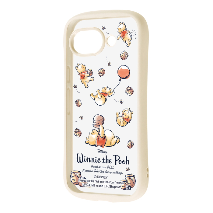 プーさんとはちみつの壺や風船などプーさんらしいアイテムを散りばめて心が和むようなデザインと、衝撃に強い安心感を兼ね備えたハイブリッドケース。