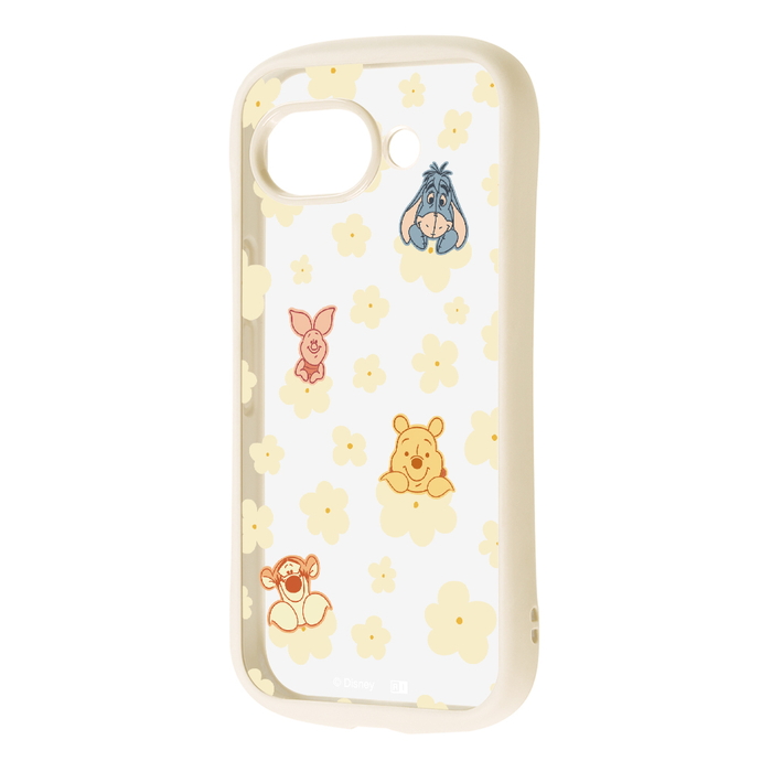 プーと仲間達が花に乗ってこちらを覗いているような可愛らしいデザインで、衝撃に強く、フィット感にも優れたハイブリッドケース。