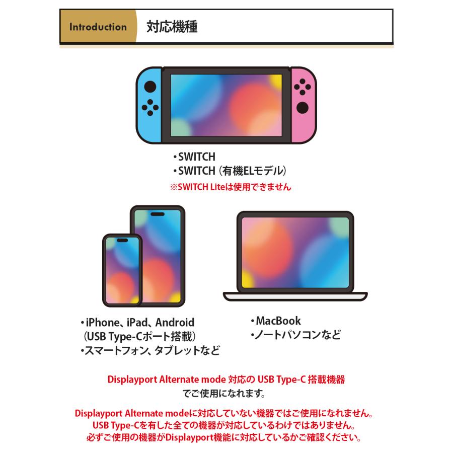 ※スマートフォンやタブレット、switchをTVやモニターに接続する際は、本製品と別途HDMIケーブルが必要です。