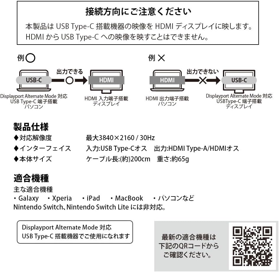 USB-Cコネクタ HDMIミラーリングケーブル 2m/3m